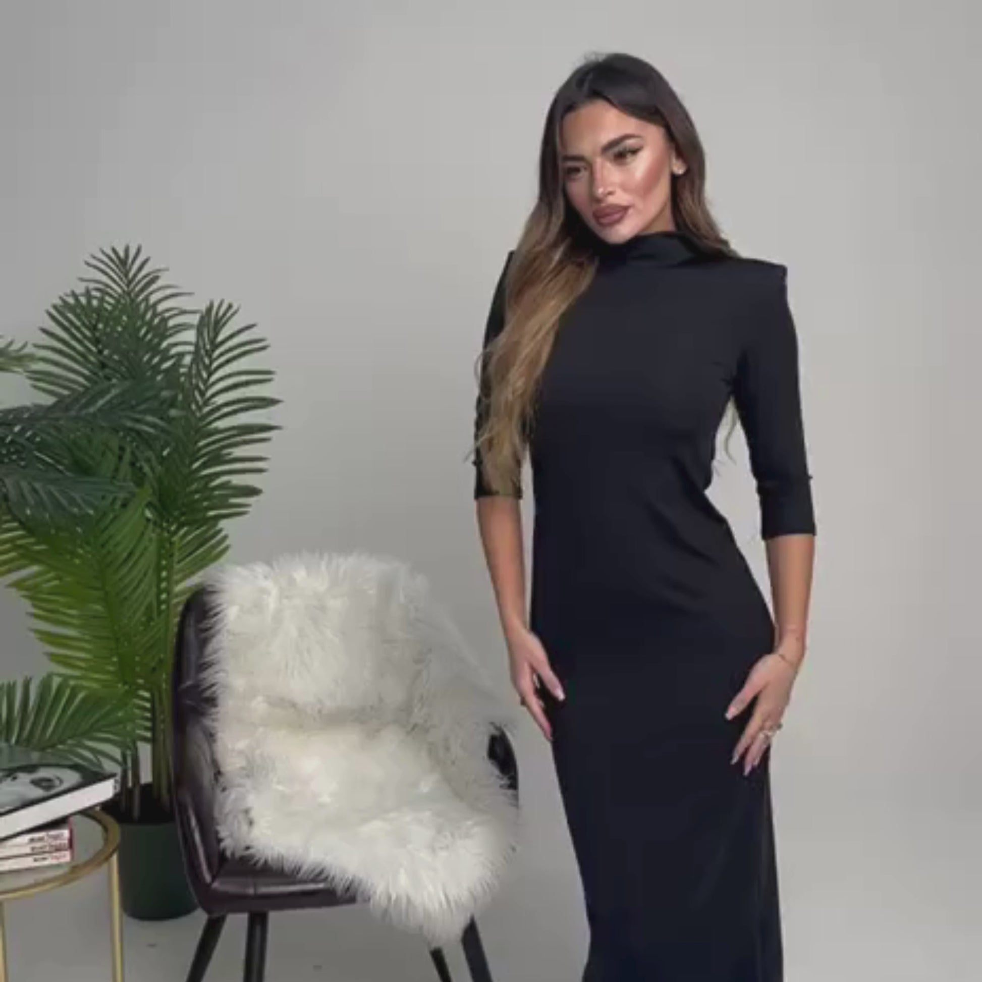 Abito lungo dal design minimal ed elegante, realizzato in tessuto morbido ed elasticizzato che segue delicatamente le forme. Linea fluida e vestibilità confortevole, ideale per occasioni serali, eventi o look sofisticati dal gusto contemporaneo.